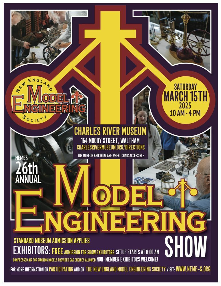 The New England Model Engineering Society is a group for those who enjoy metal working and machining. While originally centered on the construction of model gas and steam engines, we don't discourage other kinds of models and projects and things made out of wood, plastic, paper or just about anything else, or the collecting and restoration of hand and machine tools.